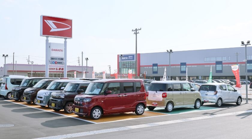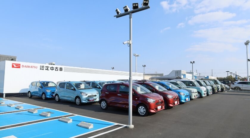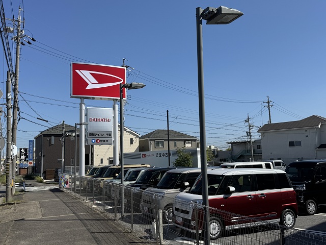 愛知ダイハツ新家店では広い敷地に豊富な在庫を取り揃えております。